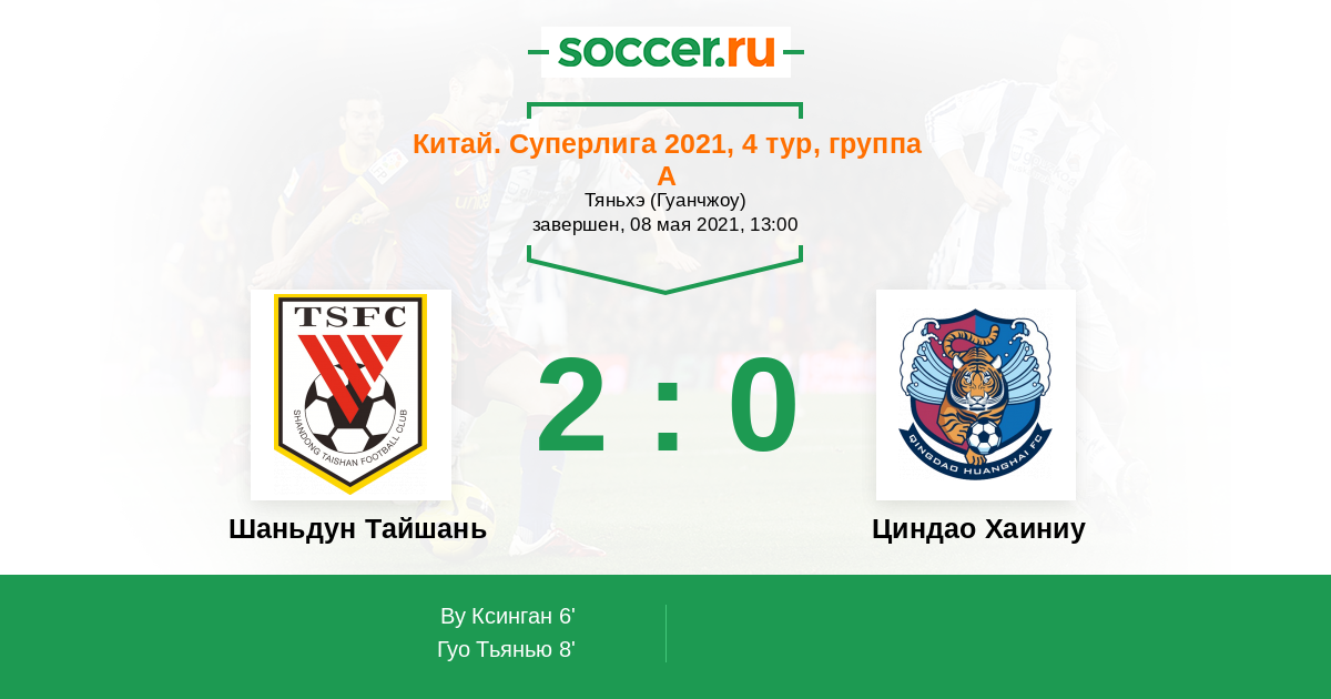 Протокол матча Шаньдун Тайшань против Циндао Хаиниу