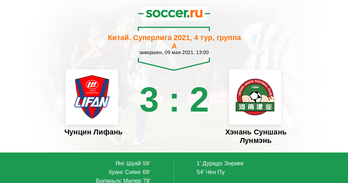 Протокол матча Чунцин Лифань против Хэнань Суншань Лунмэнь