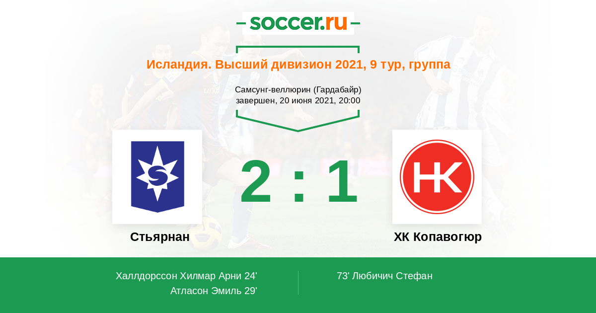 73' (2:1) Любичич Стефан (30) (Эггертссон Орвар (22))