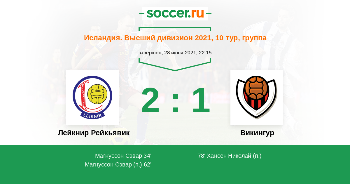 Протокол матча Лейкнир Рейкьявик против Викингур