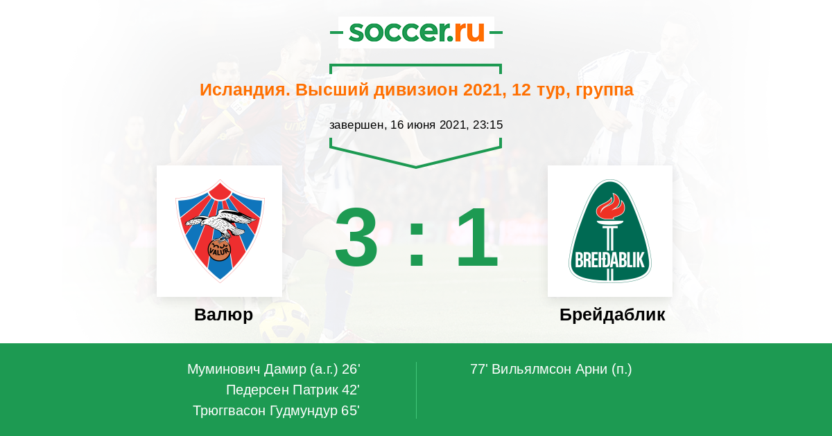 65' (3:0) Трюггвасон Гудмундур (14)
