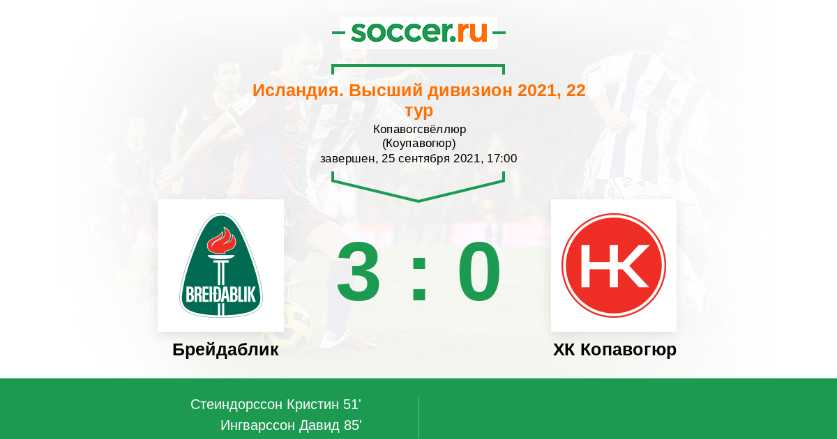 Протокол матча Брейдаблик против ХК Копавогюр