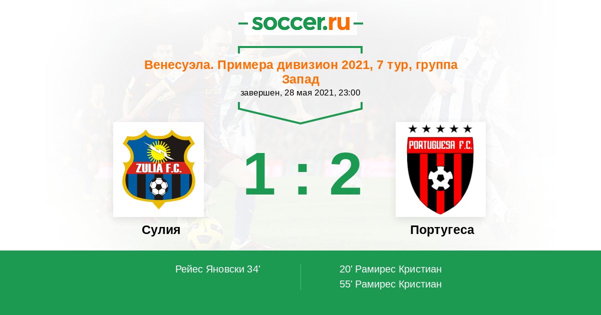 Протокол матча Сулия против Португеса