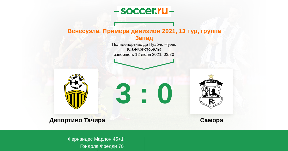 Протокол матча Депортиво Тачира против Замора