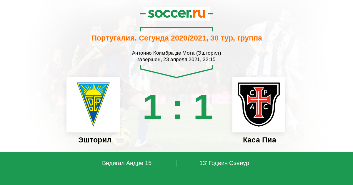 Протокол матча Эшторил против Каса Пиа