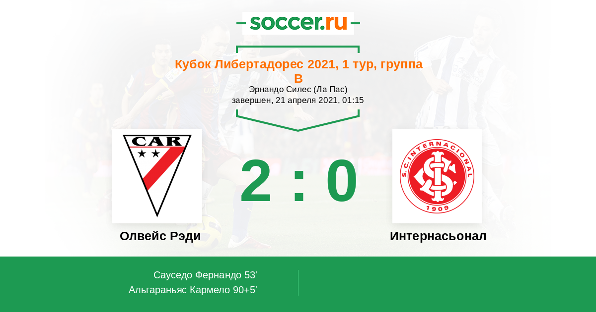 53' (1:0) Сауседо Фернандо (Рамальо Родриго (8))