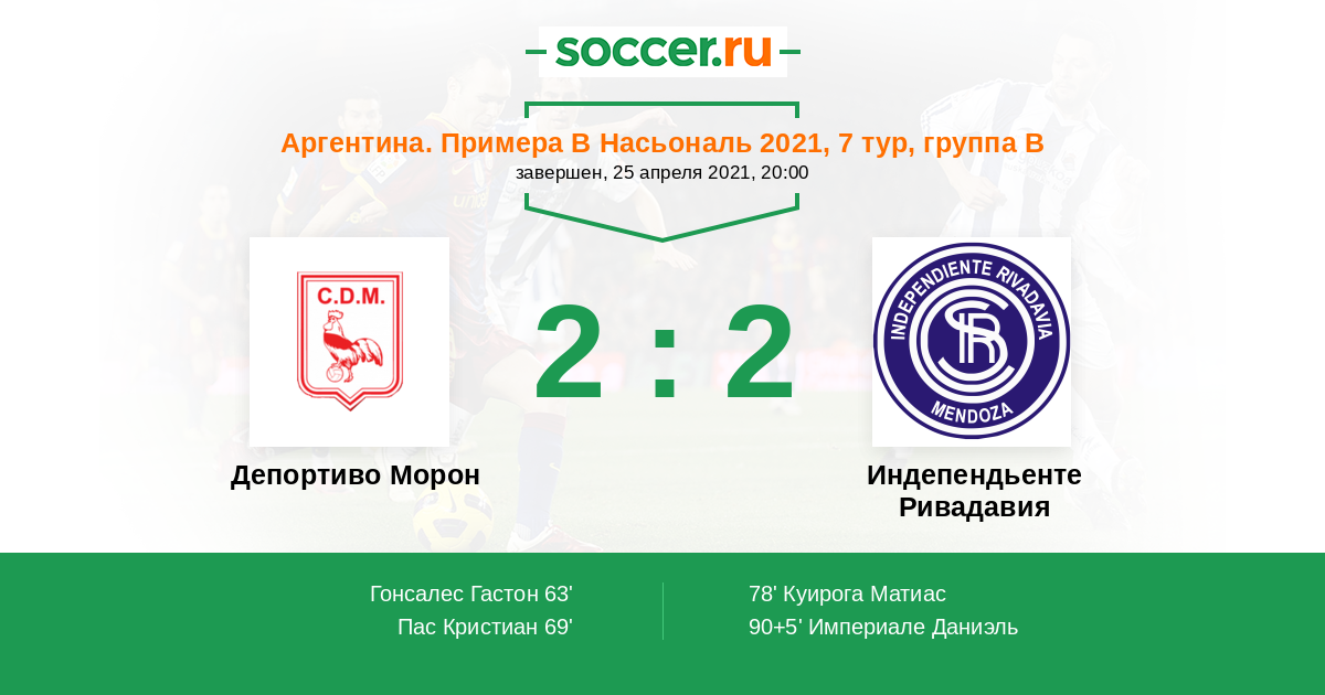 Протокол матча Депортиво Морон против Индепендьенте Ривадавия