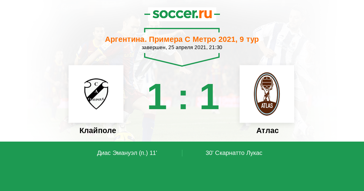 Протокол матча Клайполе против Атлас