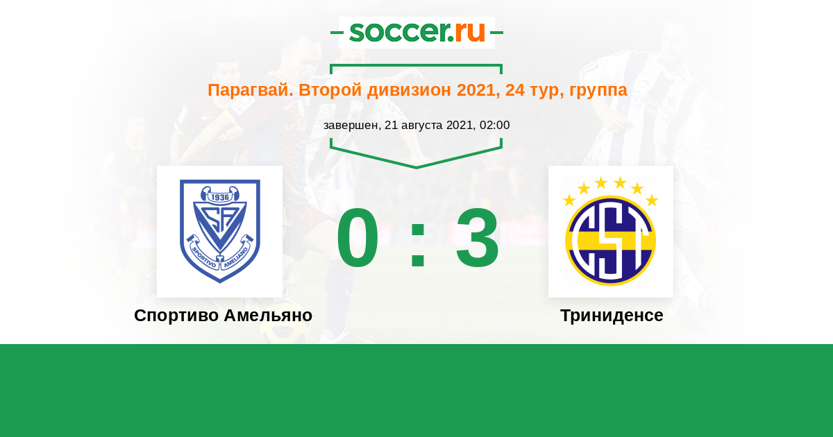 Парагвай. Второй дивизион 16.05.2021 Триниденсе Логотип футбольный клуб Триниденсе (Асунсьон) 2:1 Логотип футбольный клуб Спортиво Амельяно (Асунсьон) Спортиво Амельяно