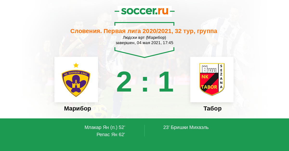 Протокол матча Марибор против Табор