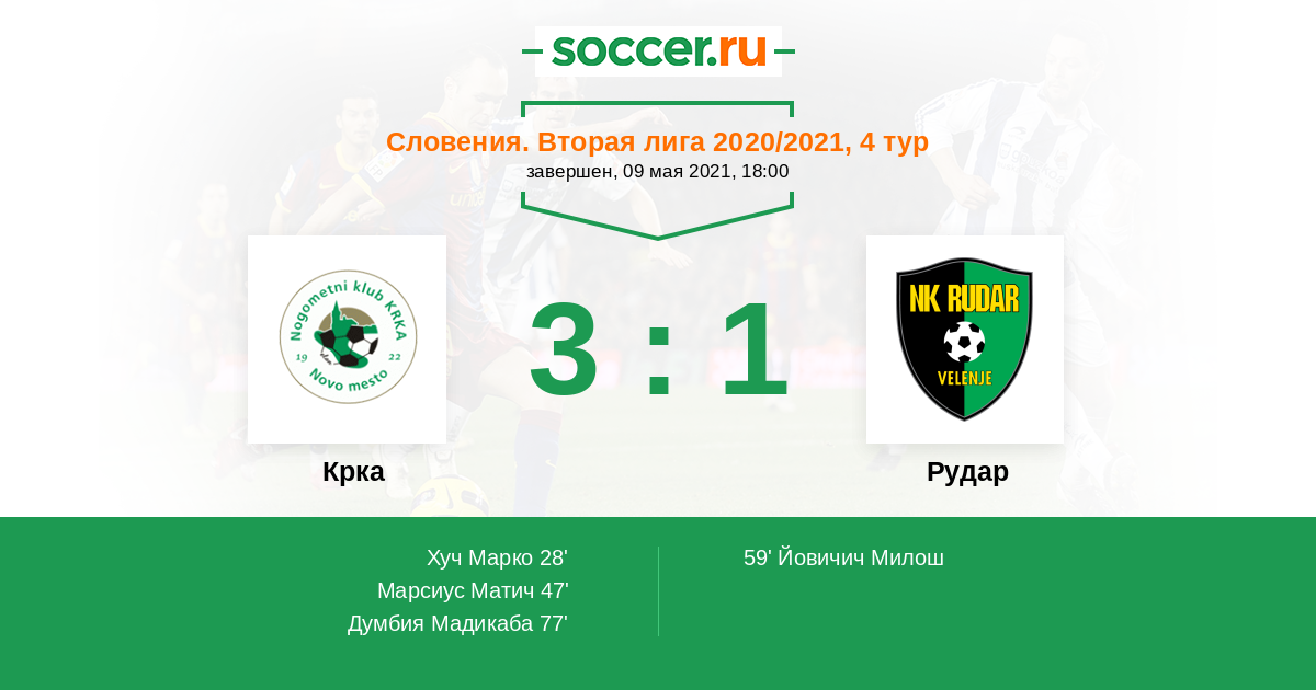 Протокол матча Крка против Рудар