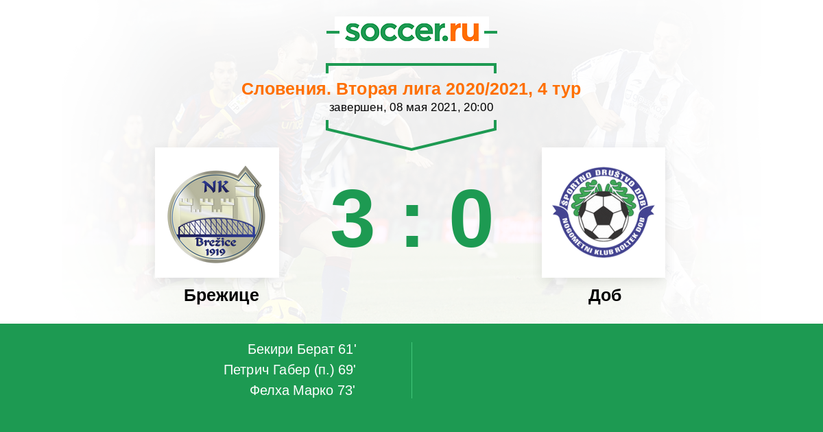 Протокол матча Брежице против Доб