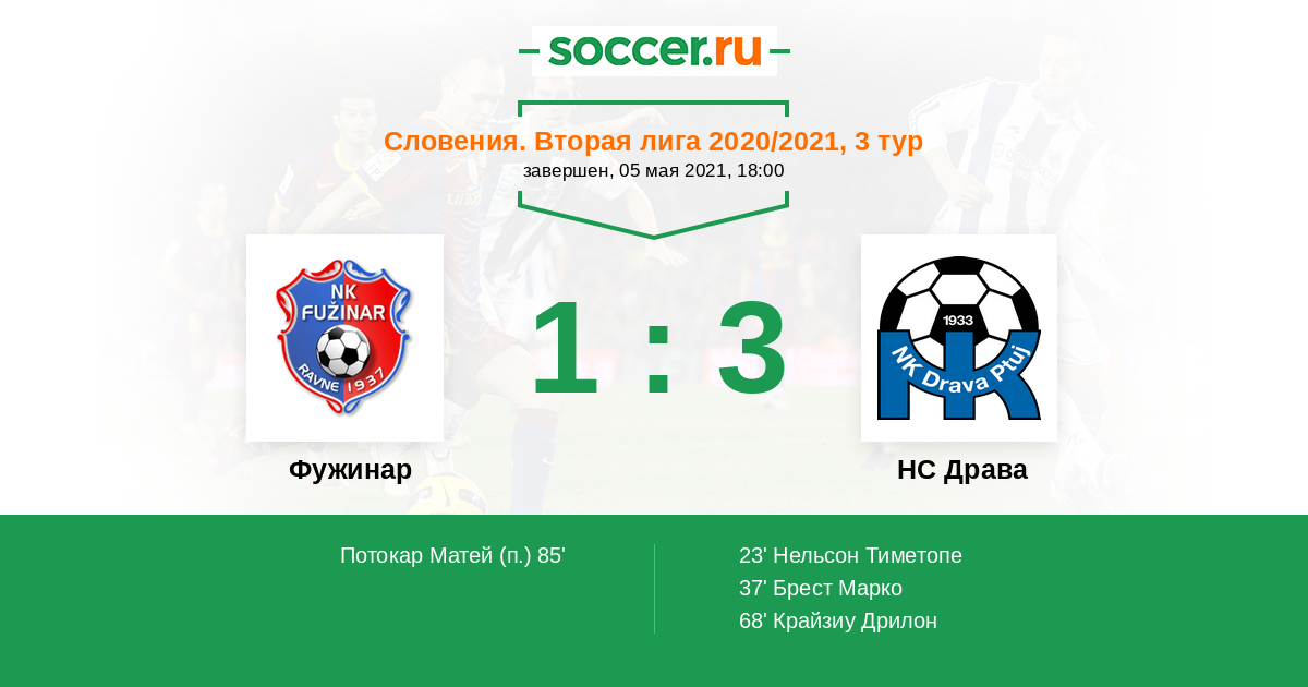 Протокол матча Фужинар против НС Драва