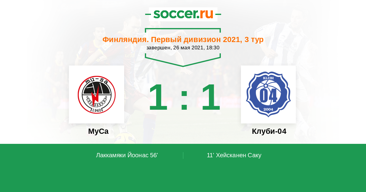 Протокол матча МуСа против Клуби-04