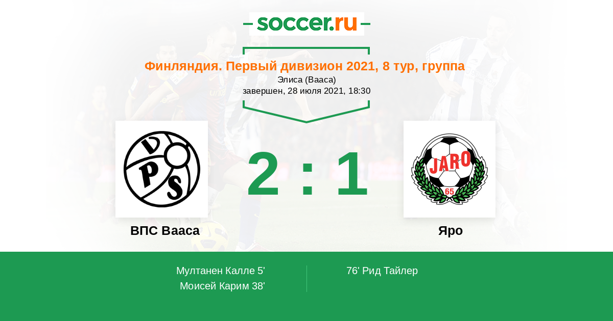 Протокол матча ВПС Вааса против Яро