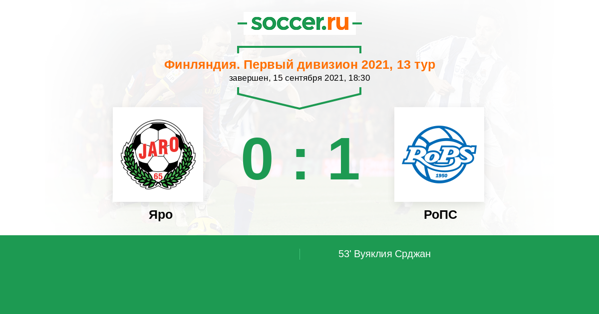 Протокол матча Яро против РоПС