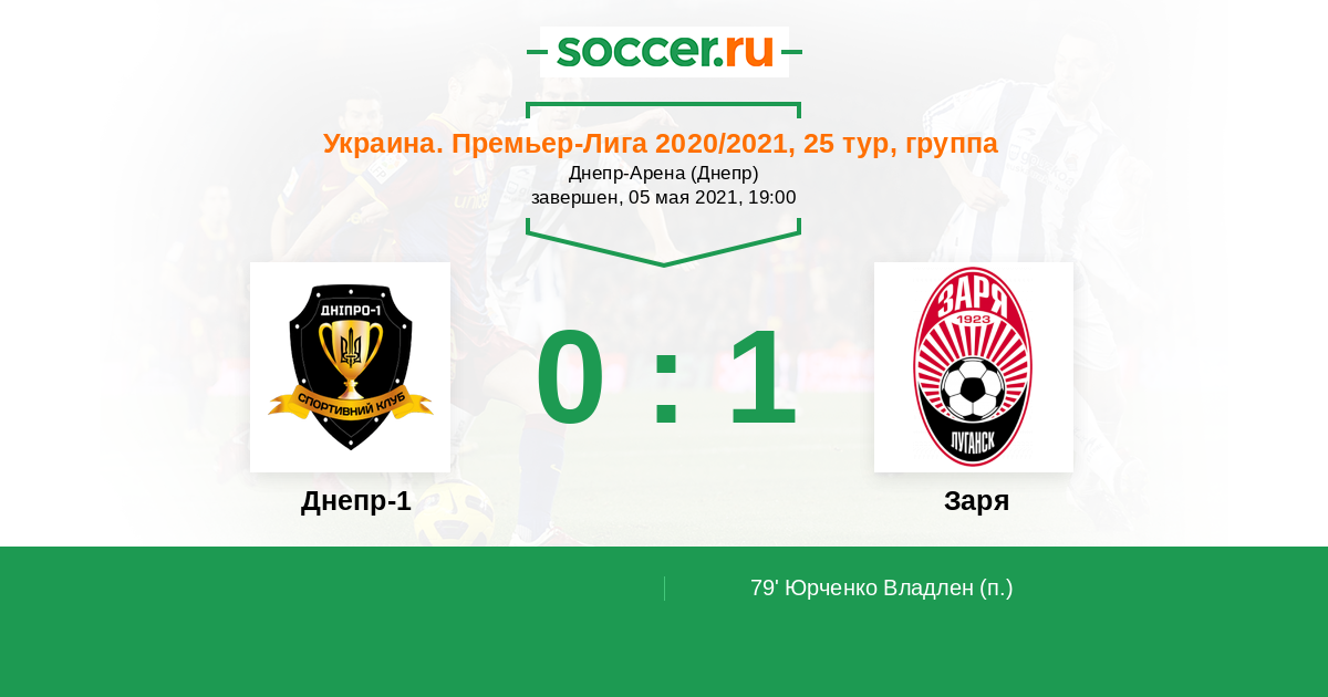 Протокол матча Днепр-1 против Заря
