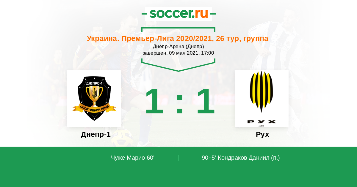 Протокол матча Днепр-1 против Рух