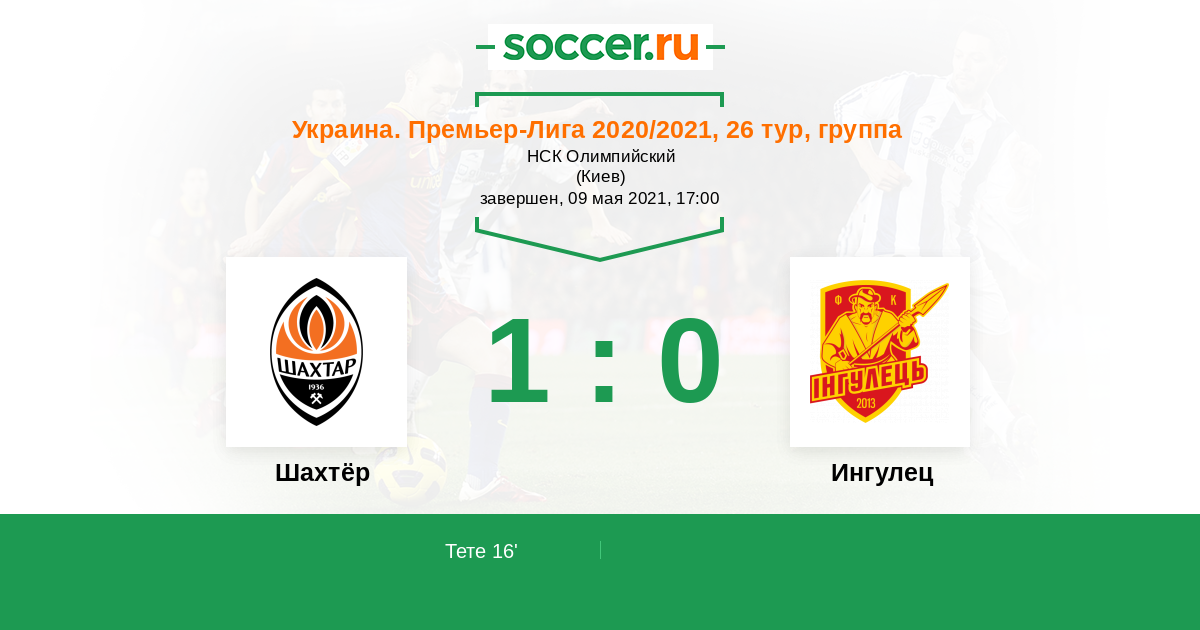16' (1:0) Тете (14) (Патрик Алан (21))