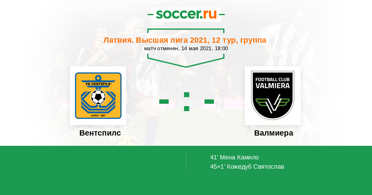 Расстановка матча Вентспилс против Валмиера