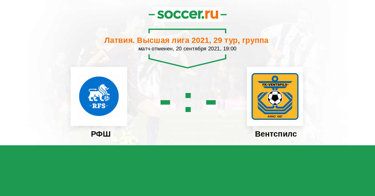Латвия. Высшая лига 20.09.2020 РФШ Логотип футбольный клуб РФШ (Рига) 1:1 Логотип футбольный клуб Вентспилс Вентспилс