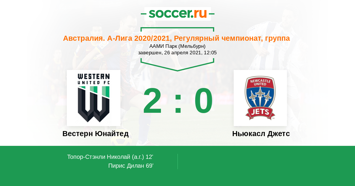 Протокол матча Вестерн Юнайтед против Ньюкасл Джетс