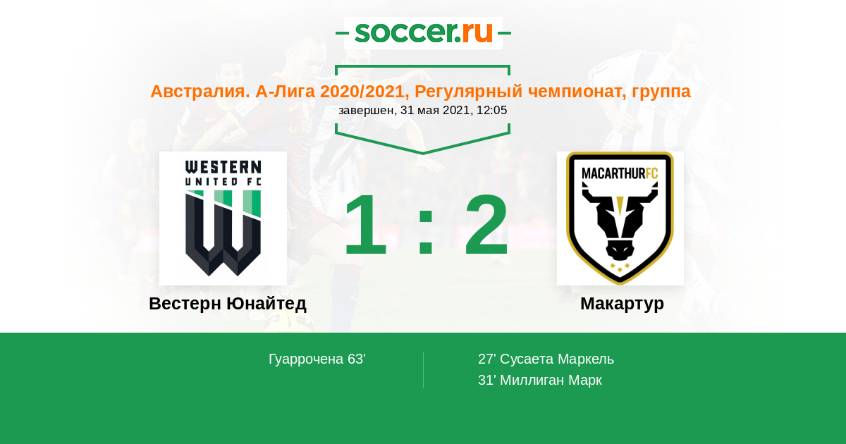 Протокол матча Вестерн Юнайтед против Макартур