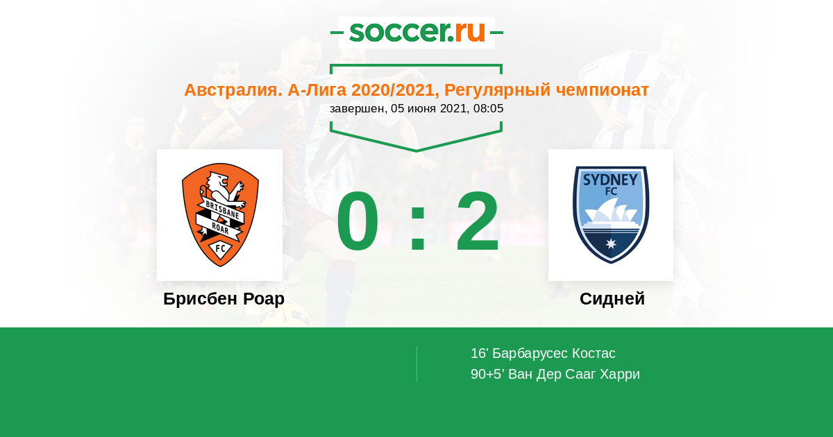 Протокол матча Брисбен Роар против Сидней