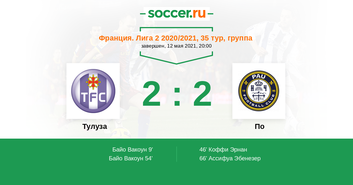 Протокол матча Тулуза против По