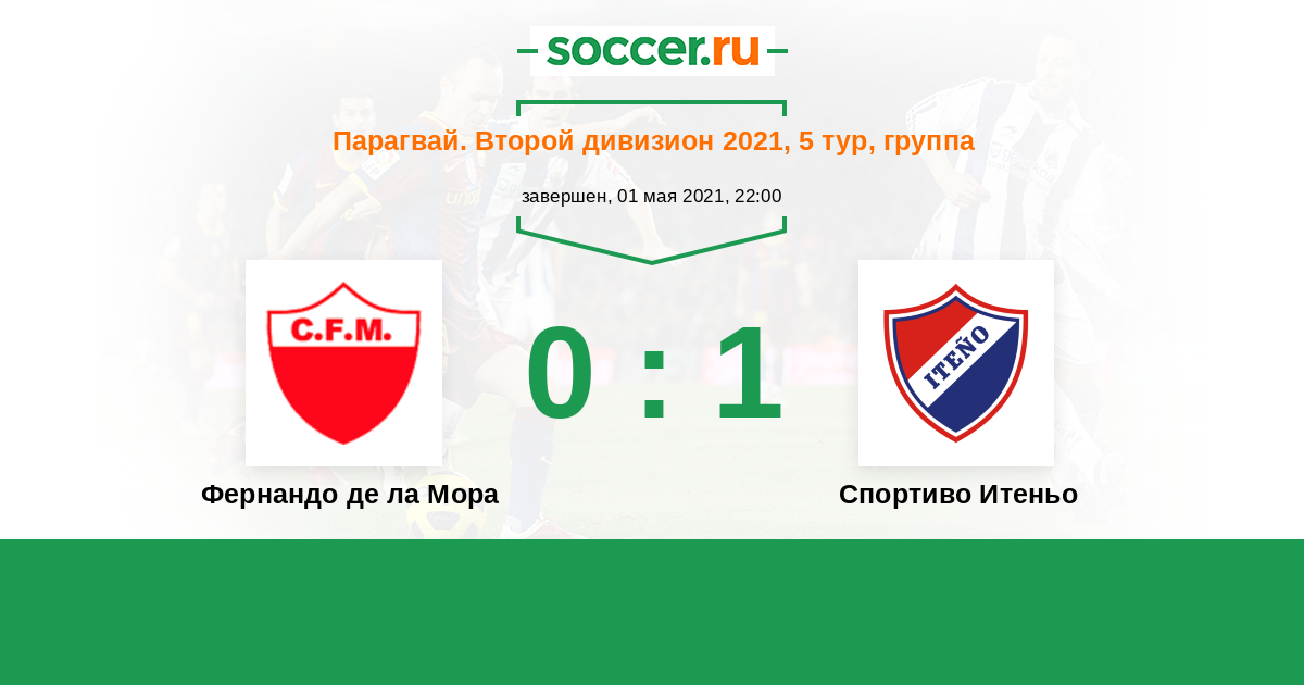 Парагвай. Второй дивизион 02.07.2022 Фернандо де ла Мора Логотип футбольный клуб Фернандо де ла Мора 4:1 Логотип футбольный клуб Спортиво Итеньо (Ита) Спортиво Итеньо