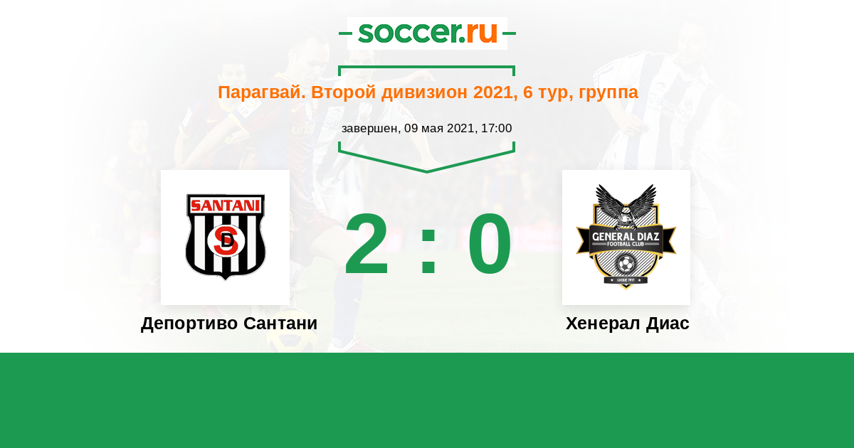 Парагвай. Второй дивизион 13.08.2021 Хенерал Диас Логотип футбольный клуб Хенерал Диас (Луке) 0:1 Логотип футбольный клуб Депортиво Сантани (Сан Эстанислао) Депортиво Сантани