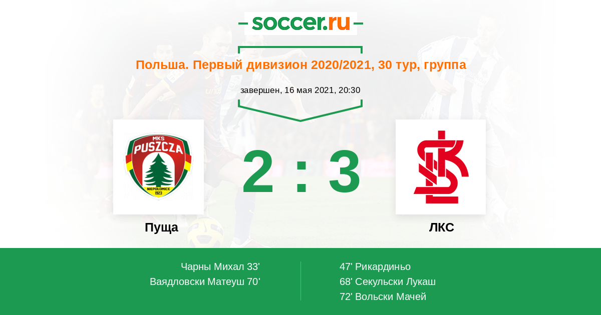 Протокол матча Пуща против ЛКС