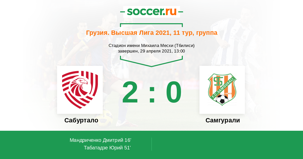 Протокол матча Сабуртало против Самгурали