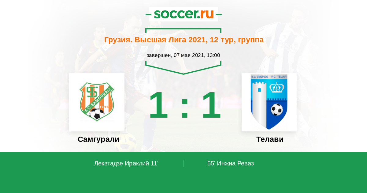 11' (1:0) Леквтадзе Ираклий (21) (Долидзе Григол (22))