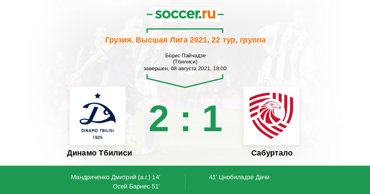 Протокол матча Динамо Тбилиси против Сабуртало