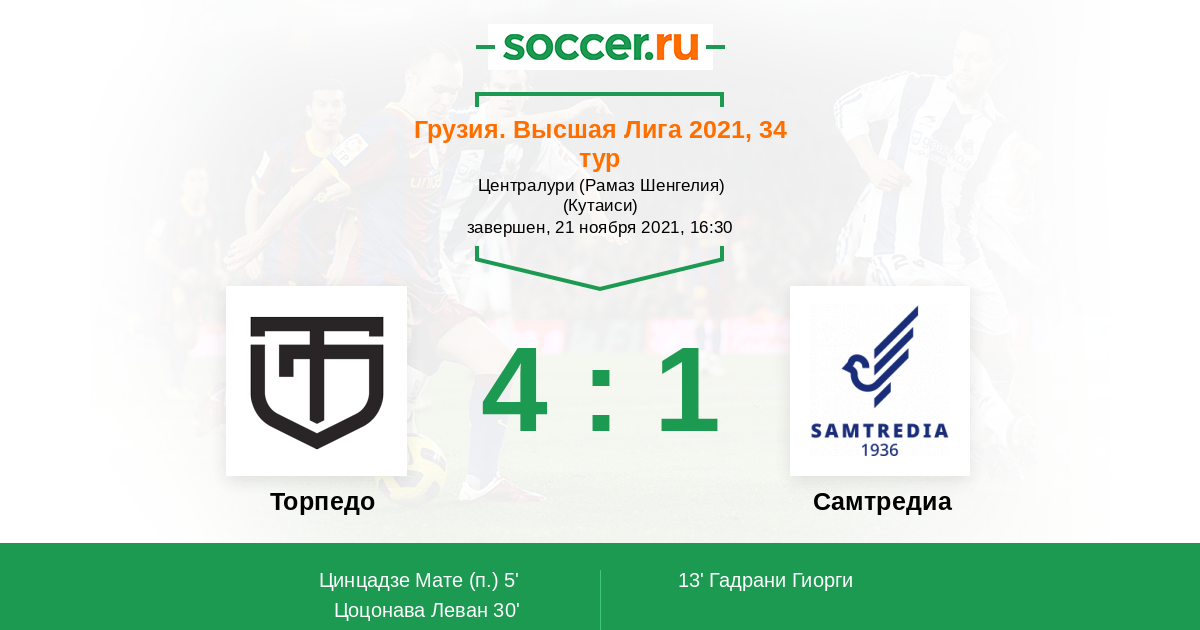 Протокол матча Торпедо против Самтредиа