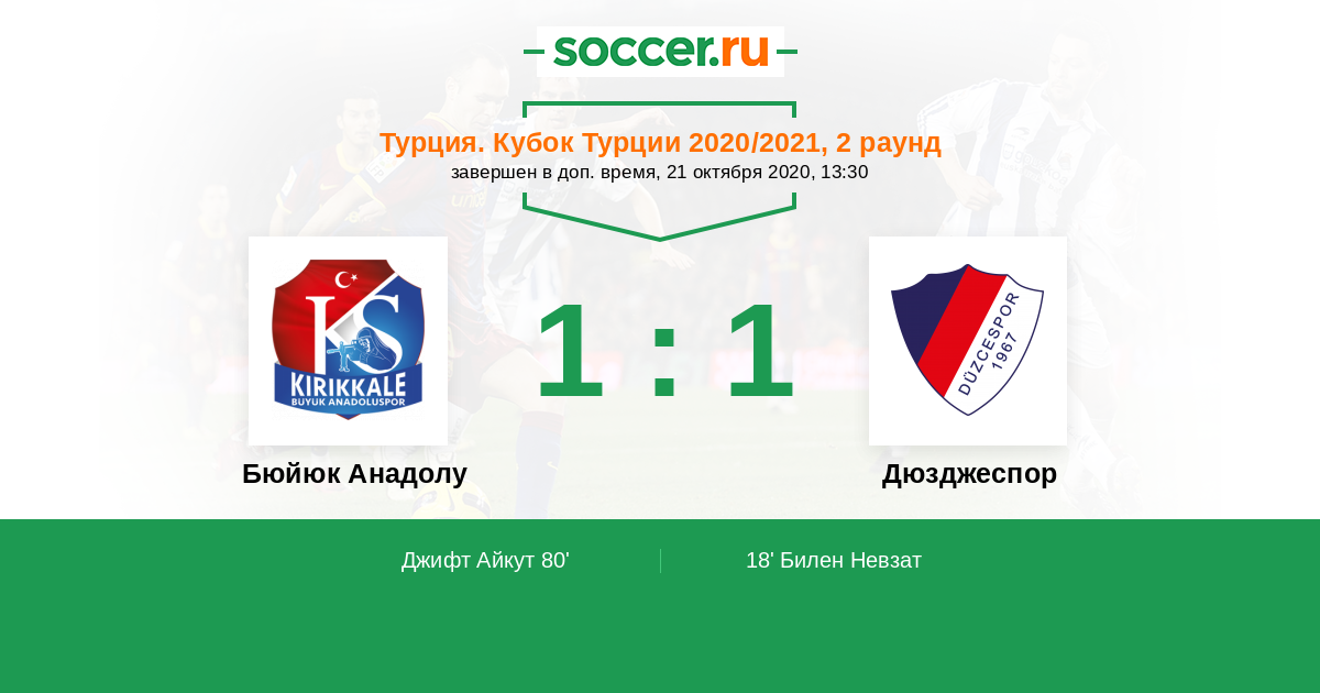 Протокол матча Бюйюк Анадолу против Дюзджеспор
