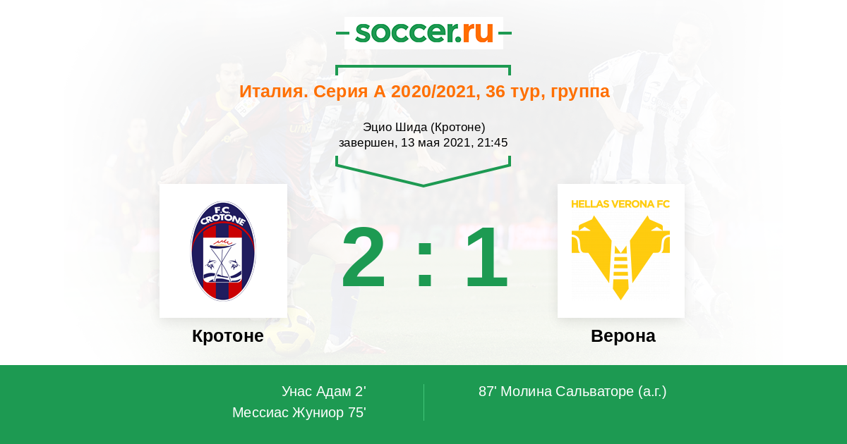Протокол матча Кротоне против Верона