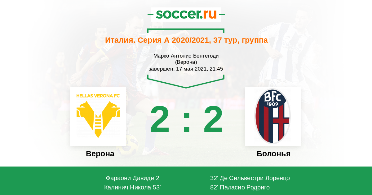 Протокол матча Верона против Болонья