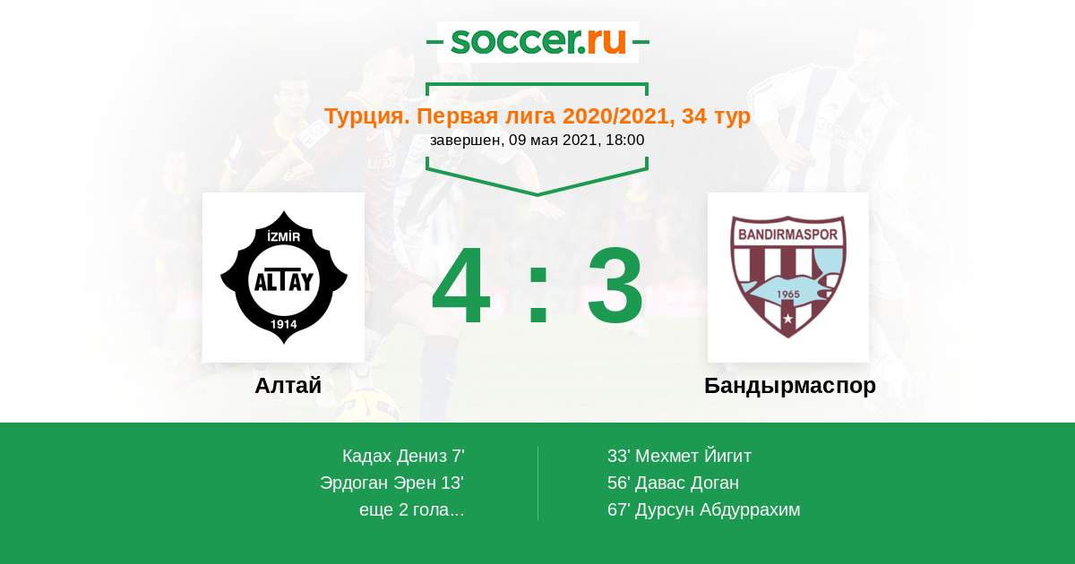 7' (1:0) Кадах Дениз (63) (Эрдоган Эрен (30))