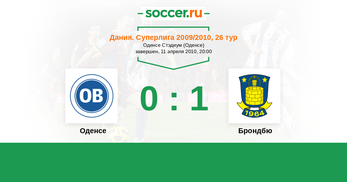 Дания. Суперлига 22.11.2009 Брондбю Логотип футбольный клуб Брондбю (Брённбю) 1:3 Логотип футбольный клуб Оденсе Оденсе
