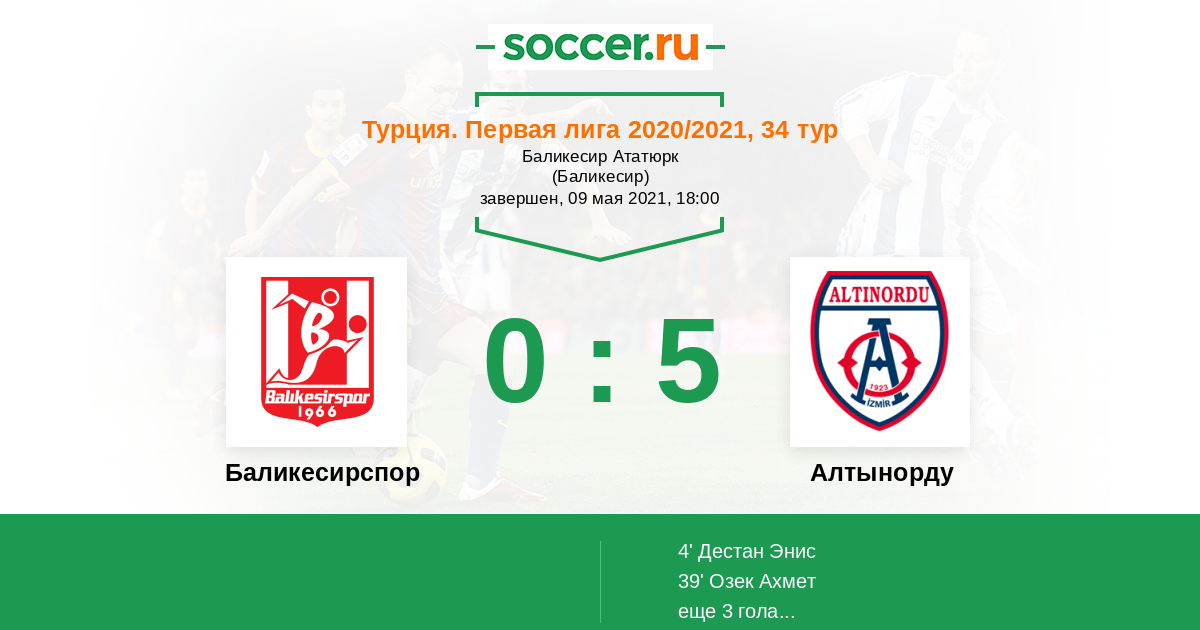 39' (0:2) Озек Ахмет (9) (Джил Фуркан (24))