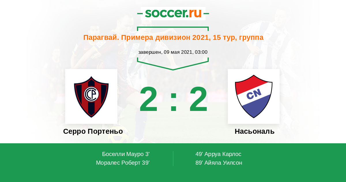 Протокол матча Серро Портеньо против Насьональ