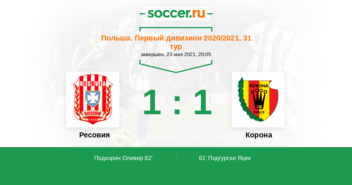 Протокол матча Ресовия против Корона