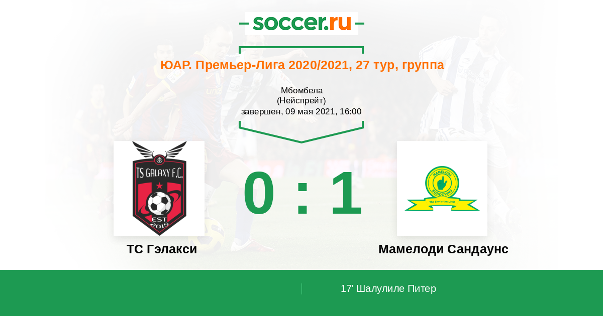 Протокол матча ТС Гэлакси против Мамелоди Сандаунс