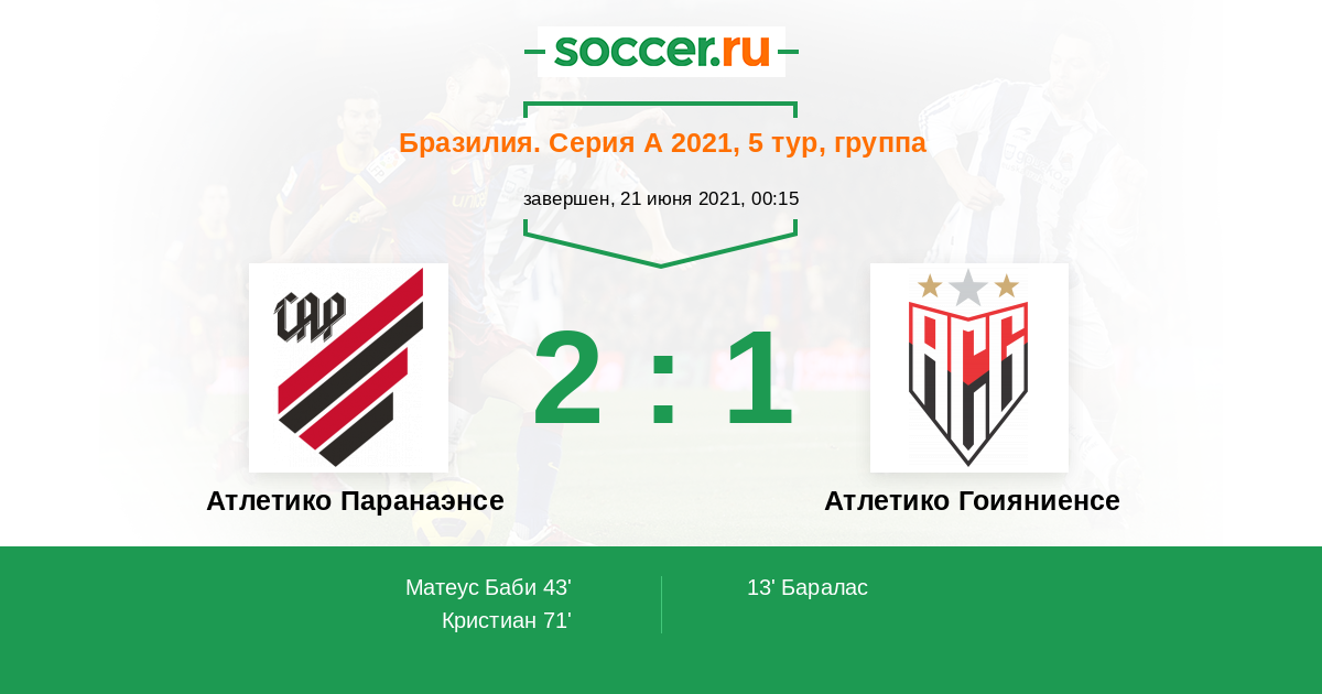 43' (1:1) Матеус Баби (21) (Марсиньо (5))