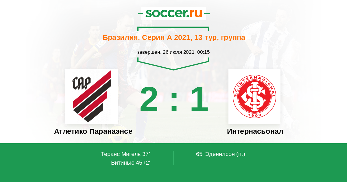 Протокол матча Атлетико Паранаэнсе против Интернасьонал