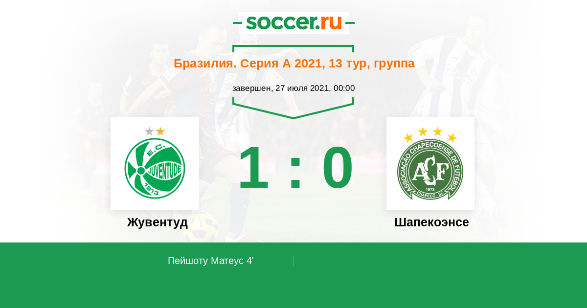 Протокол матча Жувентуд против Шапекоэнсе
