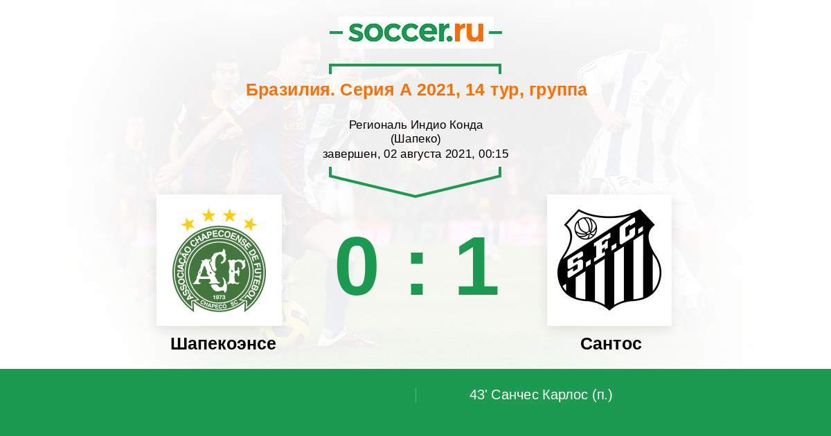 Протокол матча Шапекоэнсе против Сантос