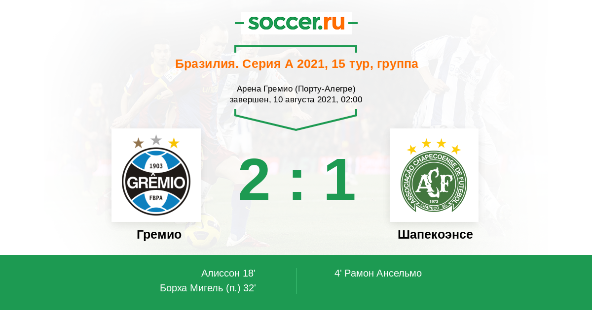 18' (1:1) Алиссон (23) (Мендес Дарлан (15))